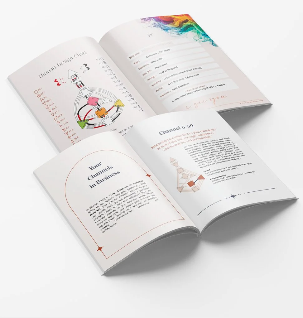 The Quantum Business Blueprint translates your Human Design into a practical energetic strategy — showing how your natural energy attracts clients, makes decisions, and sustains momentum without burnout.